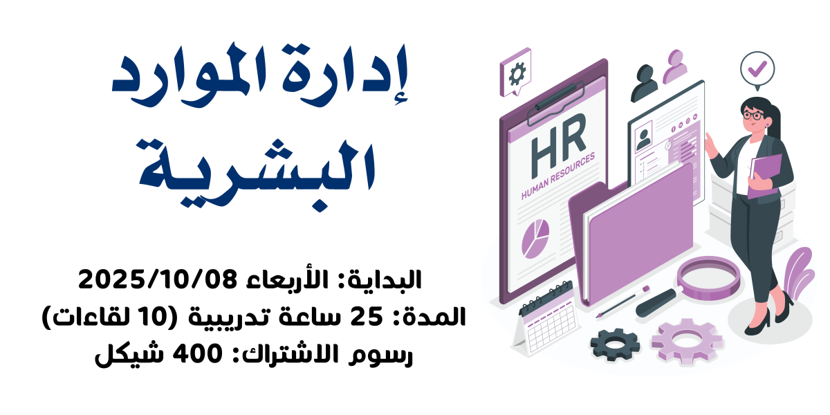 مدة الدورة: تبدأ الدورة اعتبار من يوم الاربعاء08/10/2025 لمدة 25 ساعة تدريبية، وذلك على مدى 10 لقاءات.