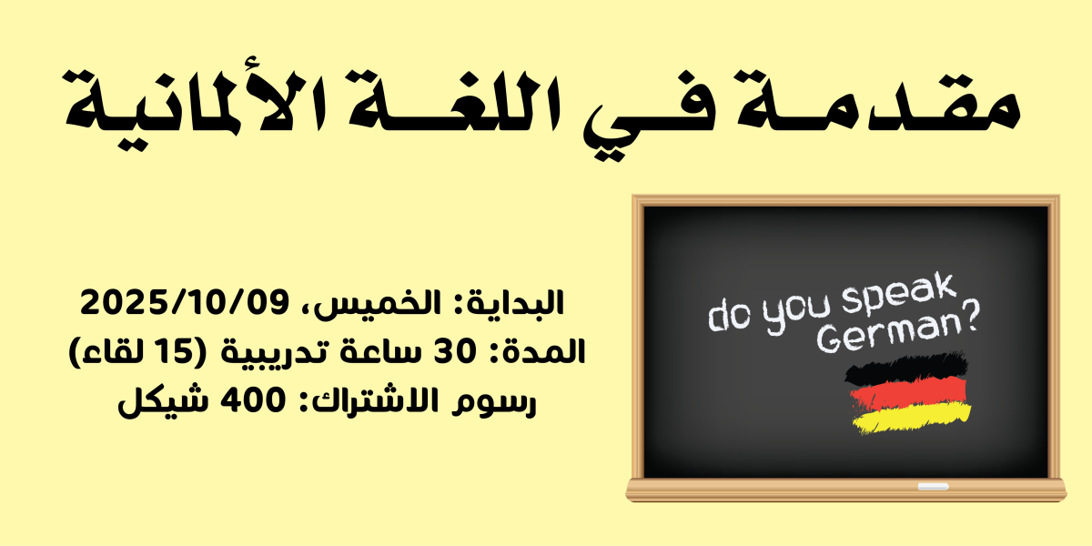 مدة الدورة: تبدأ الدورة اعتبار من يوم الخميس 09/10/2025 لمدة 30 ساعة تدريبية، وذلك على مدى 15 لقاء