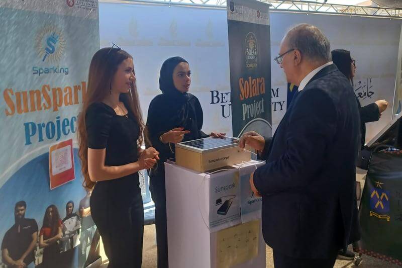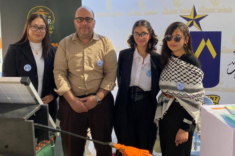The University was represented by the Department of Engineering, showcasing four applied projects in the field of renewable energy. The delegation included Dr. Anas Salhab and twelve students from the Sustainable Energy Engineering program, along with Engineer Khalil Adi, representing the Salesian Vocational Training Center in Bethlehem.