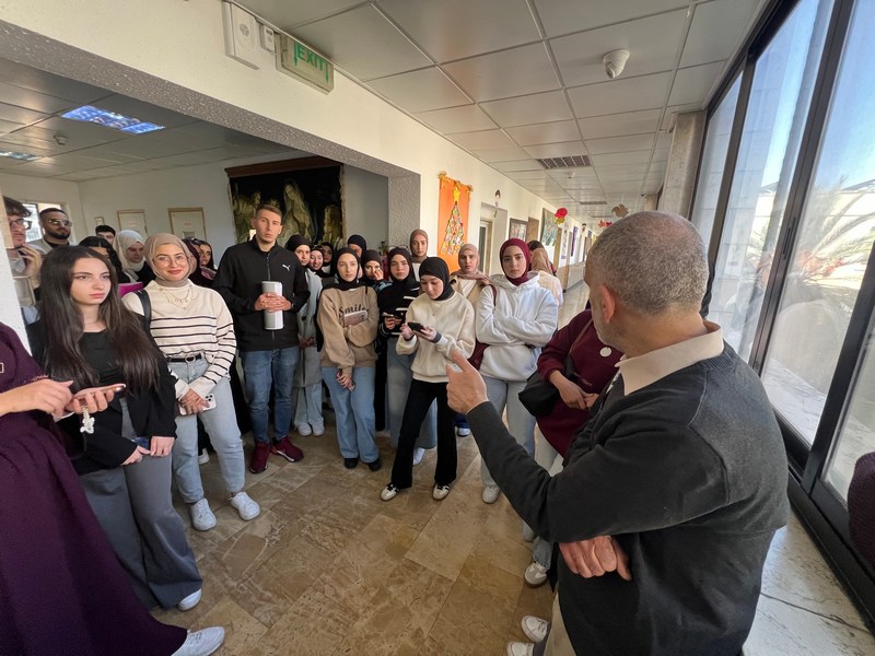 Students were welcomed by Mr. Iskandar Andon, who led a comprehensive orientation tour. He introduced the students to the Crèche’s mission, its long history in Bethlehem, and the essential care it provides for abandoned and vulnerable children. Students learned about the circumstances that bring children to the Crèche and the ways in which the institution supports their emotional, educational, and developmental needs.