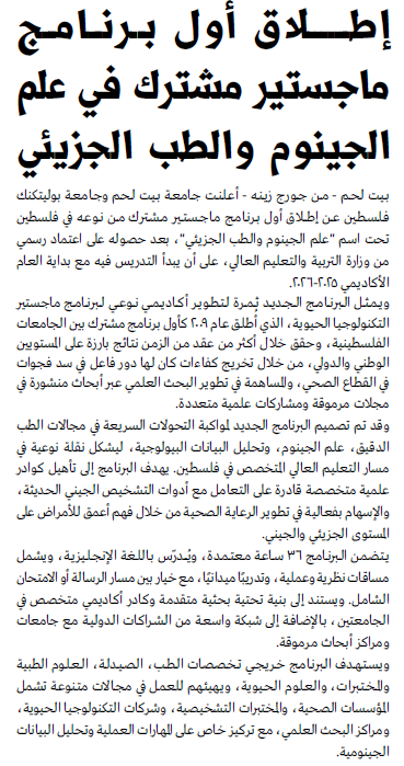 إطلاق أول برنامج ماجستير مشترك في علم الجينوم والطب الجزيئي