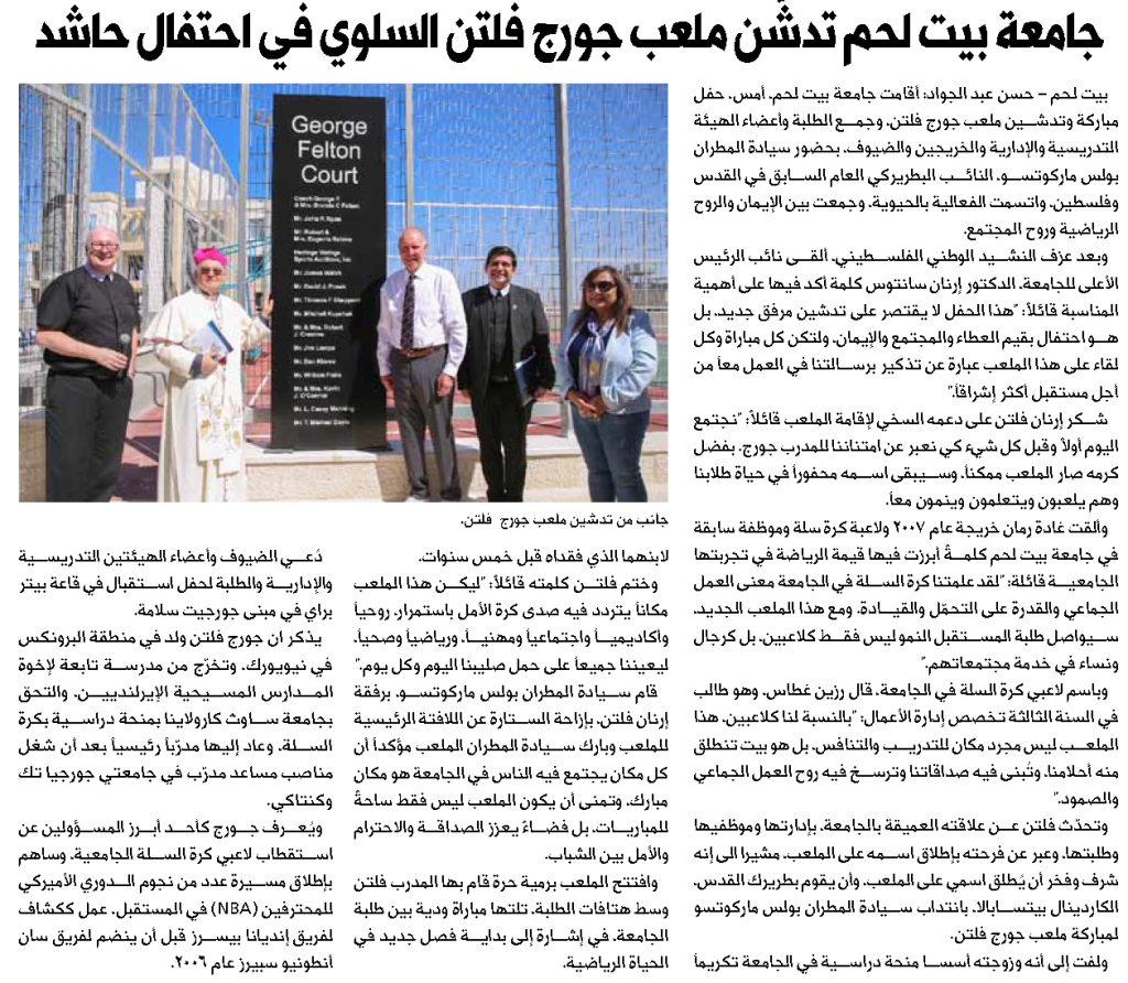 جامعة بيت لحم تدشن ملعب جورج فلتون السلوي في احتفال حاشد