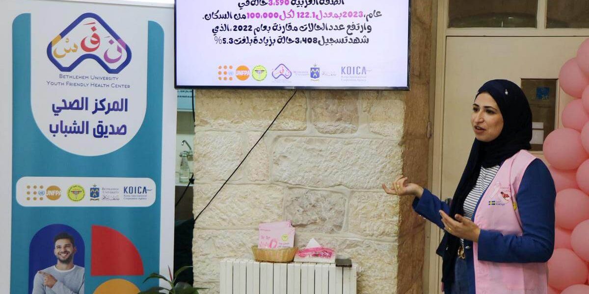 نظم مكتب عمادة شؤون الطلبة من خلال مركز “نَفَس” – مركز جامعة بيت لحم الصحي صديق الشباب، بالتعاون مع جمعية الإغاثة الطبية الفلسطينية، ورشة توعوية – تثقيفية حول سرطان الثدي، وذلك ضمن فعاليات شهر أكتوبر الوردي.