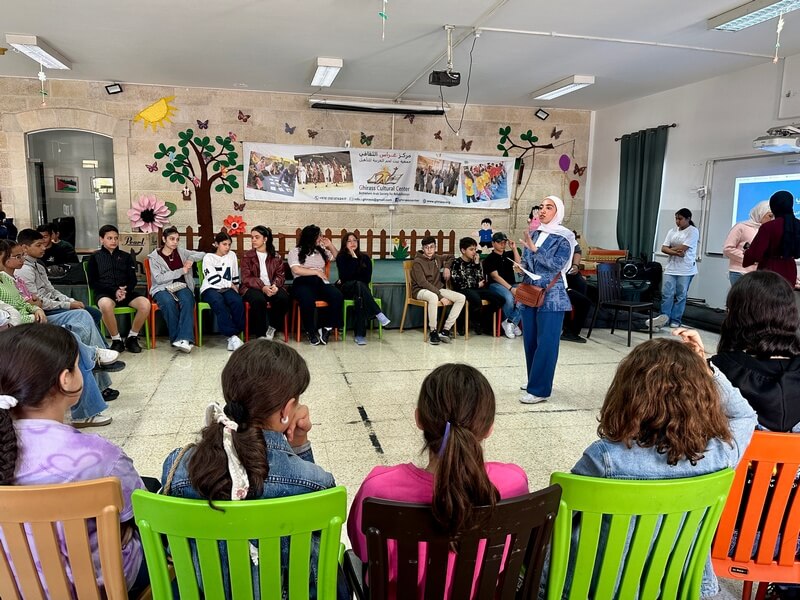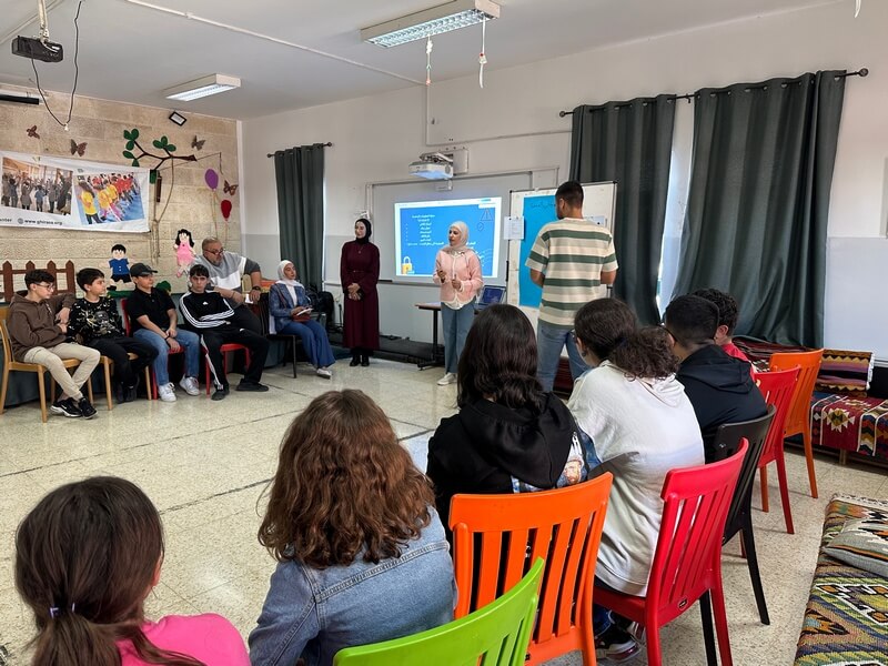 وفي السياق ذاته، نظّمت طالبات برنامج الإعلام التفاعلي: رغد القيسي، ولاء الحرباوي، وبيسان تعامرة، بتاريخ 21 تشرين الثاني 2025، مبادرة توعوية حول الأمان الرقمي والذكاء الاصطناعي والابتزاز الإلكتروني في مركز غِراس.