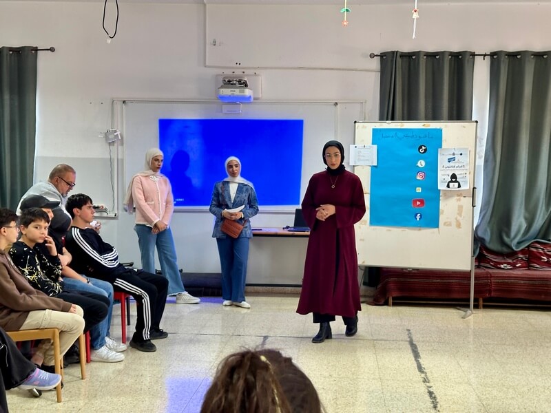 ضمن إطار مشروع التربية الإعلامية الشاملة في فلسطين الذي ينفّذه معهد الشراكة المجتمعية (ICP) وبرنامج الإعلام التفاعلي والاتصال في جامعة بيت لحم، وبالشراكة مع مركز التعليم المستمر الفنلندي (KVS) وبدعم من وزارة الخارجية الفنلندية، نفّذت مجموعتان من طالبات البرنامج سلسلة مبادرات تدريبية وتوعوية ركّزت على تعزيز المهارات الإعلامية والأمان الرقمي لدى فئات متنوعة من المجتمع.