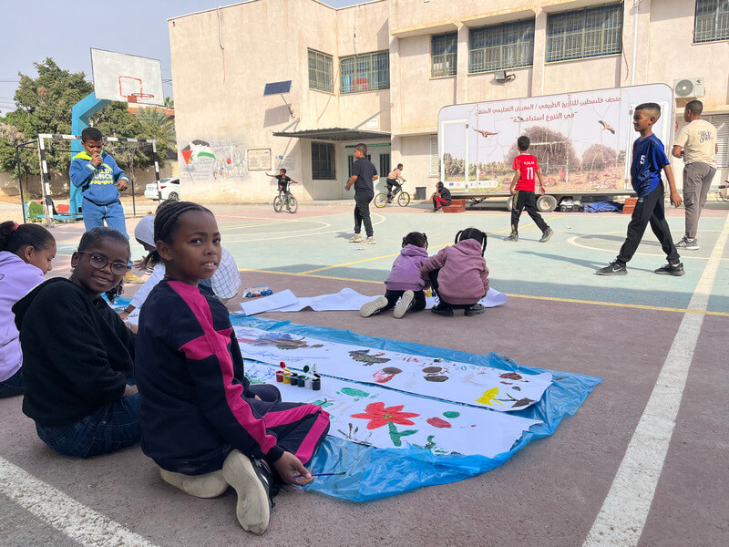 نفّذ المعهد بين في الفترة ما بين شباط وكانون الأول 2025 نحو 80 زيارة ميدانية إلى 40 تجمعًا محليًا في ست محافظات هي: الخليل، طوباس، أريحا، سلفيت، قلقيلية، ونابلس. وخلال هذه الزيارات، قدّم المعرض أنشطة تعليمية وتوعوية تفاعلية تُعرّف الأطفال والعائلات بالتنوع البيولوجي في فلسطين وأهمية حماية البيئة، مما جعل التجربة التعليمية مباشرة وشيقة.
